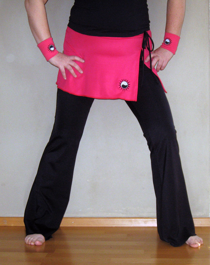 Hengittävä mikrokuituhousu esim. Zumbaan tai ulkoilukäyttöön. Hinta 60e, eri värejä. Housuun saatavilla eri värisiä irrotettavia koristenauhoja.